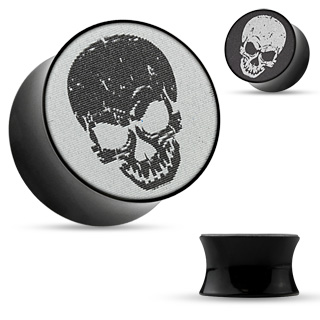 Плаги из акрила с голографическим изображением черепа - меняют цвет с белого на черный в зависимости от угла обзора.