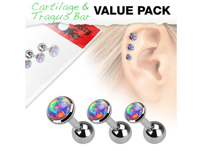 Набор микроштанг из хирургической стали 316L с лабораторным опалом. Диаметр опала: 3, 4 и 5мм.