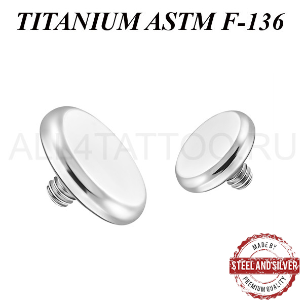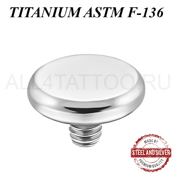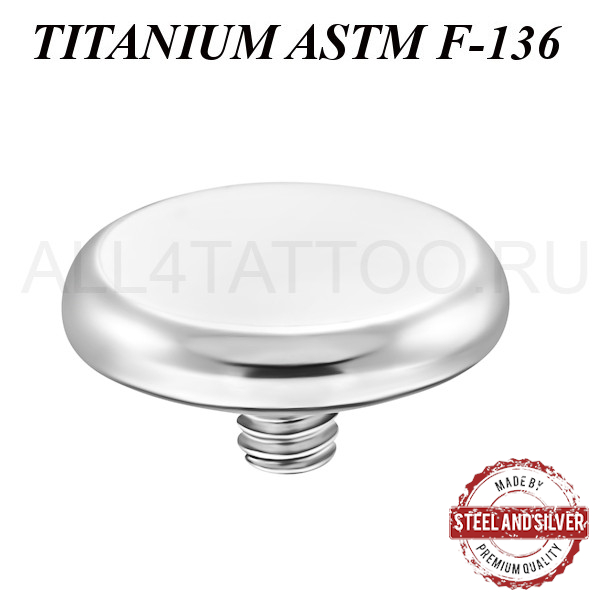Плоская накрутка из имплантационного титана ASTМ F-136, с диаметром резьбы 1,2мм, подходит к микродермалам и украшениям толщиной 1,6мм с внутренней резьбой.