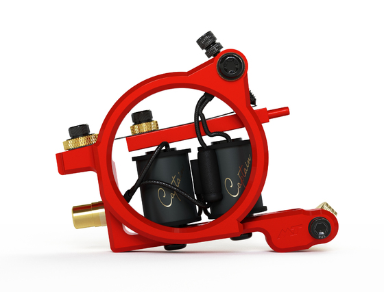 Тату машинка Мустанг Капитан шейдер красный неон для покрасочных работ и теней на алюминиевой цельнофрезерованной раме. Уверенный покрас до 25М, Flat, RM.