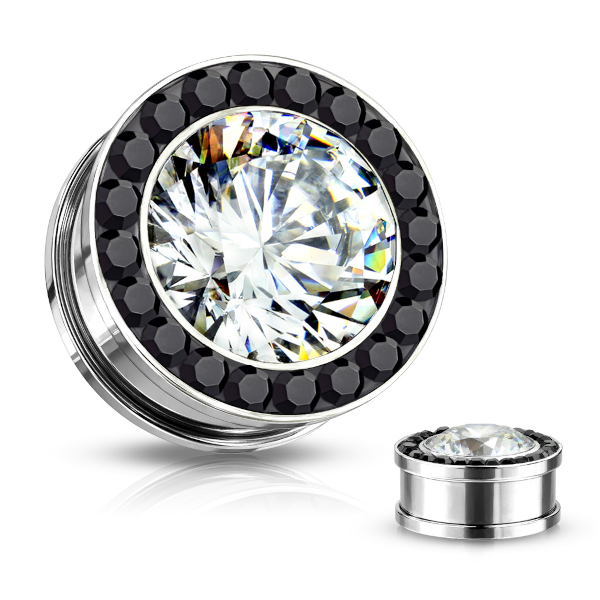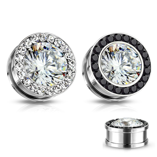 Тоннели из хирургической стали 316L с украшением в виде крупного страза, окруженного кристаллами меньшего размера.