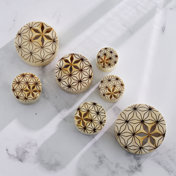 Лёгкие плаги из крокодилового дерева с гравировкой и резным элементом.