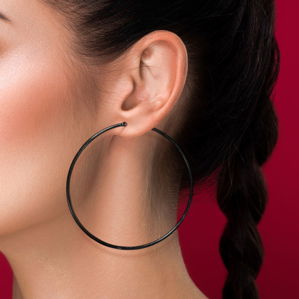 Серьги из хирургической стали 316L чёрным IP покрытием. В таблице указан внешний диаметр колец.