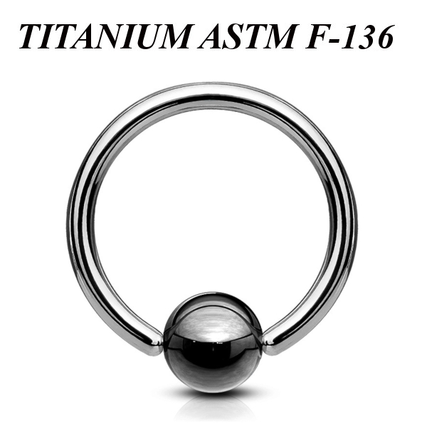 Кольцо из имплантационного титана 6Al-4V-Eli ASTM F-136 с шариком из гематита.