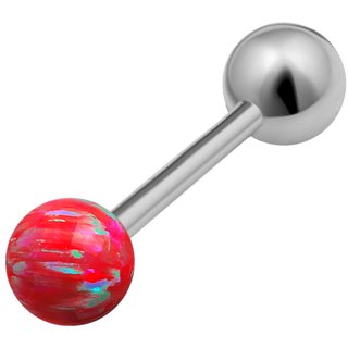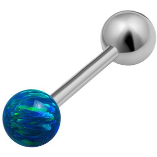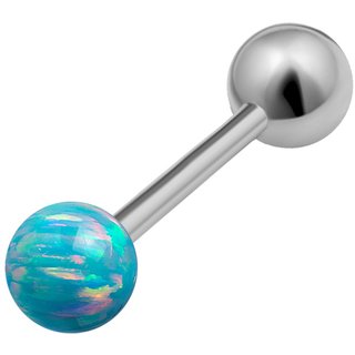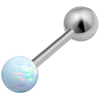 Штанга для языка из хирургической стали 316L с шариком из синтетического опала диаметром 5мм. Внешняя резьба.