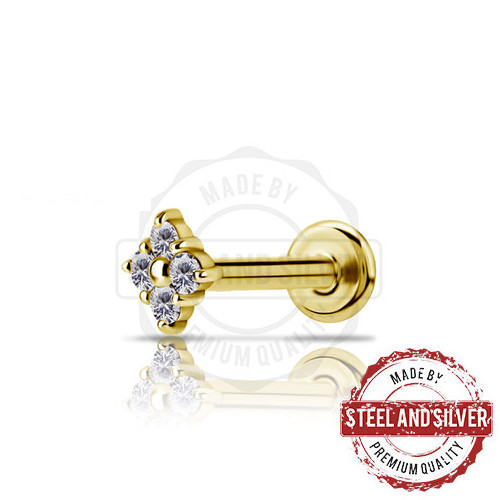 • Лабрет Steel and Silver золотой ромб с Premium Zirconia