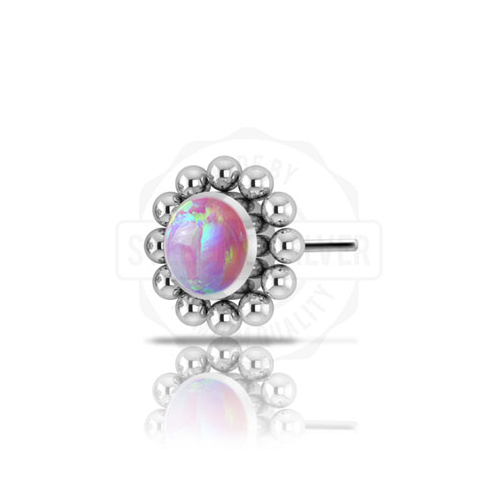 Вставка из имплантационного титана 6Al-4V-Eli ASTM: F-136 для безрезьбовых украшений. Украшена лабораторным опалом диаметром 3мм.
