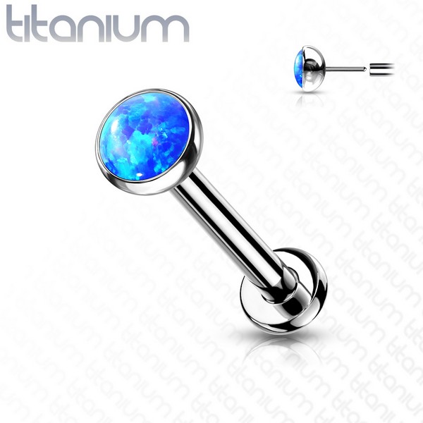 Безрезьбовой лабрет из имплантационного титана 6Al-4V-Eli ASTM: F-136. Украшен лабораторным опалом.