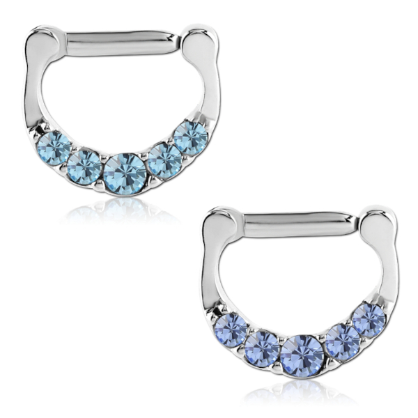 Кликер для септума из хирургической стали 316L, украшенный пятью кристаллами.