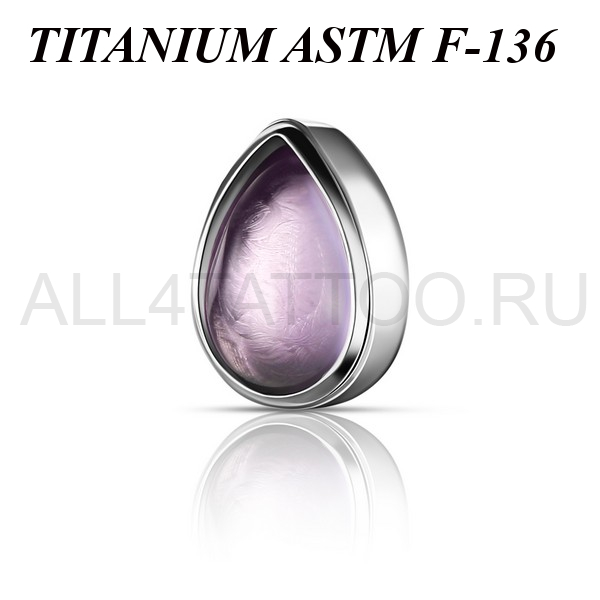 Накрутка из имплантационного титана 6Al-4V-Eli ASTM: F-136 в форме капли, украшенной аметистом. Размер накрутки: 3,5х4,5мм. Подходит для украшений с внутренней резьбой толщиной 1 и 1,2 мм.