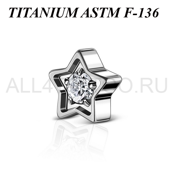 Накрутка из имплантационного титана 6Al-4V-Eli ASTM: F-136 в форме звезды с прозрачным фианитом в центре. Диаметр 3,65мм.