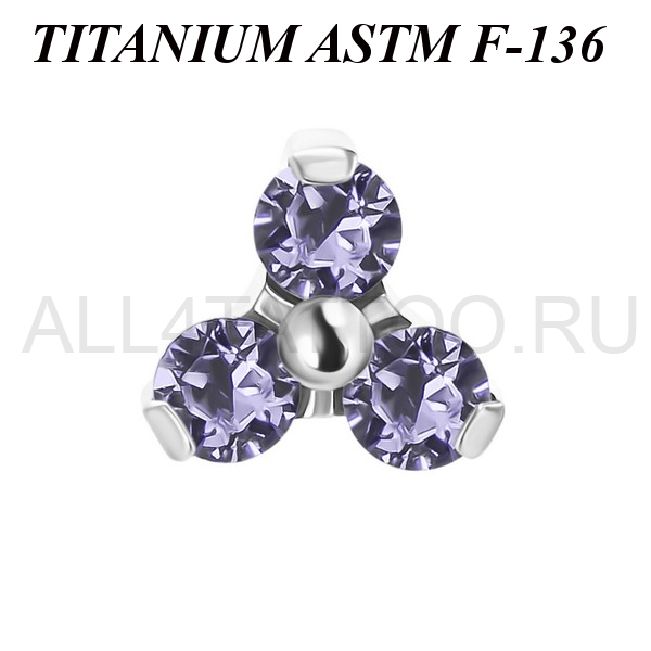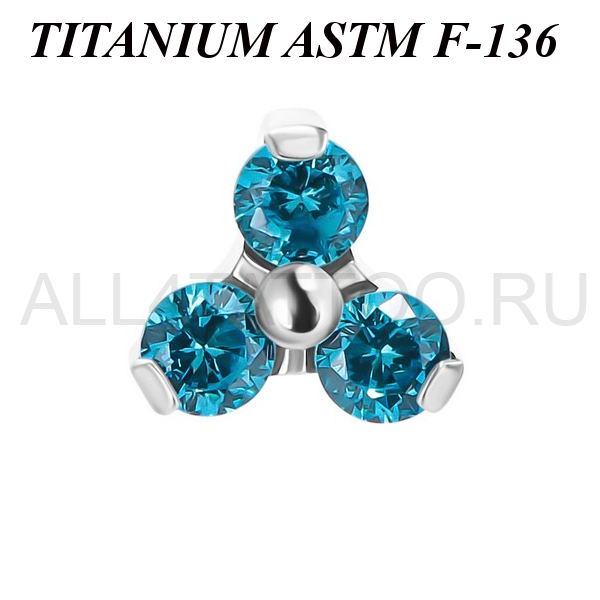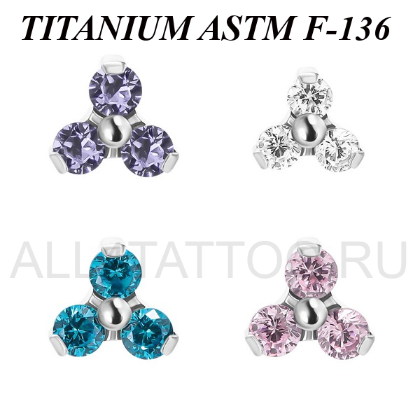 Накрутка из имплантационного титана 6Al-4V-Eli ASTM: F-136 украшена тремя фианитами. Подходит для украшений с внутренней резьбой толщиной 1 и 1,2 мм.