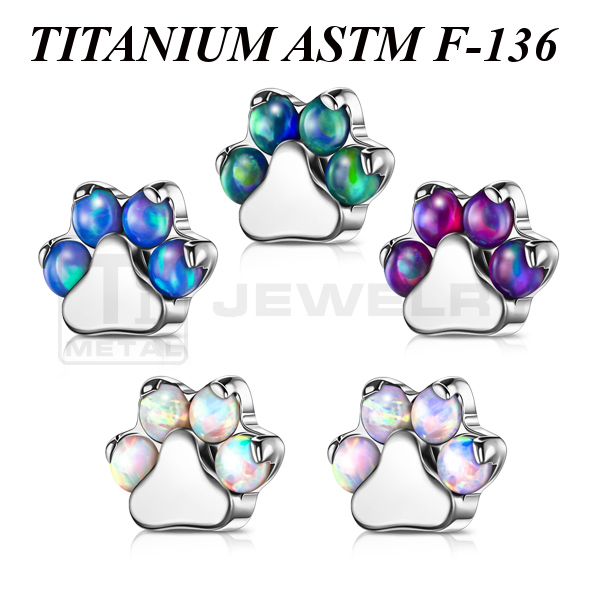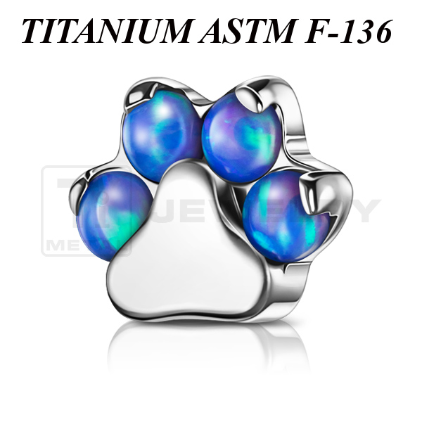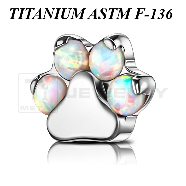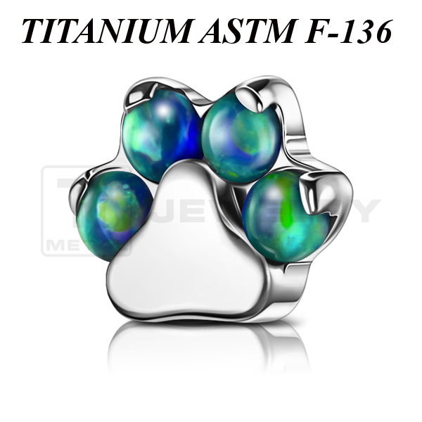 Накрутка из имплантационного титана 6Al-4V-Eli ASTM: F-136 в форме лапки, украшенной лабораторными опалами. Размер накрутки: 5,5х4,5мм.