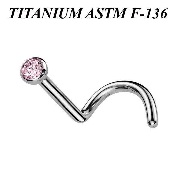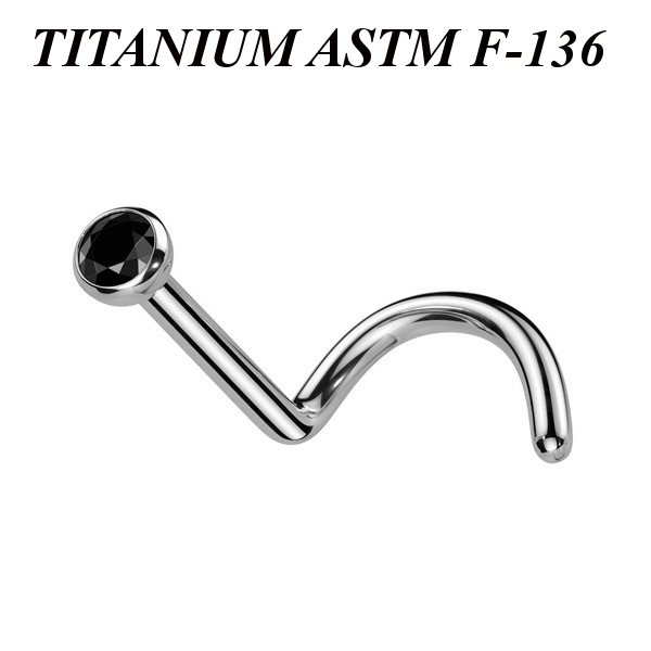 Нострил из имплантационного титана 6Al-4V-Eli ASTM: F-136 украшенный фианитом диаметром 2мм.