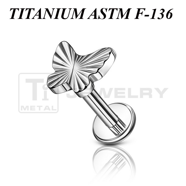 Лабрет из имплантационного титана 6Al-4V-Eli ASTM: F-136 с внутренней резьбой. Украшен накруткой в форме кристалла. Размер накрутки: 7х5мм.