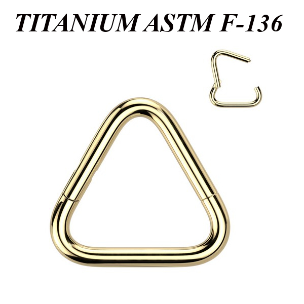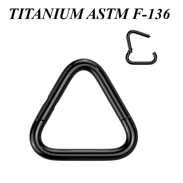 Кликер из имплантационного титана 6Al-4V-Eli ASTM: F-136 в форме треугольника. Представлен в трёх вариантах: классический титановый, с чёрным и золотым PVD покрытием.