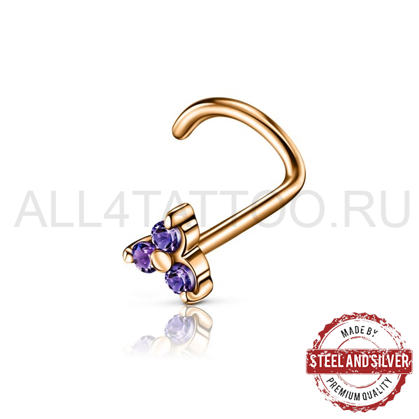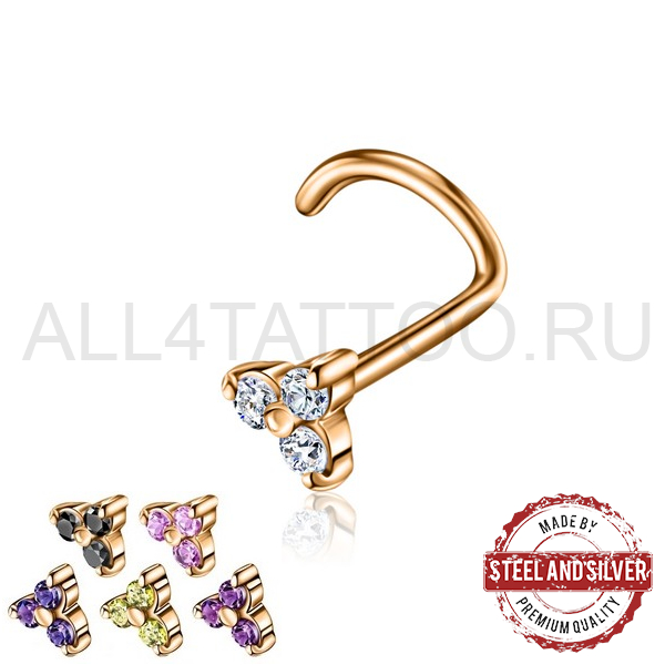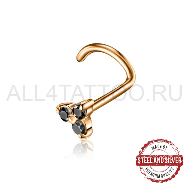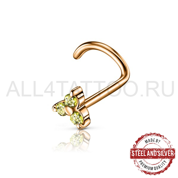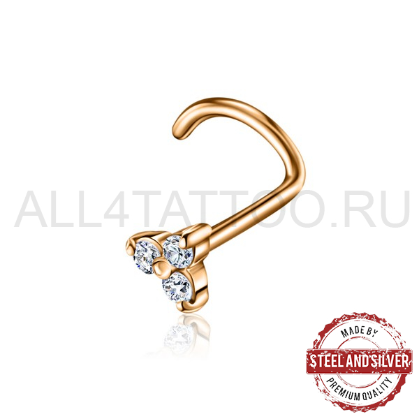 Нострил из хирургической стали 316L с PVD покрытием из 24х каратного золота. Украшен кристаллами Cubic Zirconia.