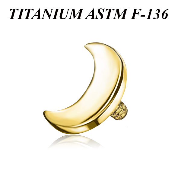 Накрутка из имплантационного титана 6Al-4V-Eli ASTM: F-136 с золотым PVD покрытием в форме полумесяца. Размер накрутки: 4х3мм. Подходит для украшений с внутренней резьбой толщиной 1 и 1,2мм.