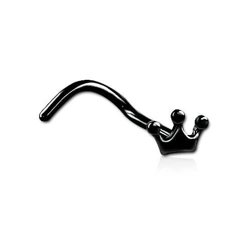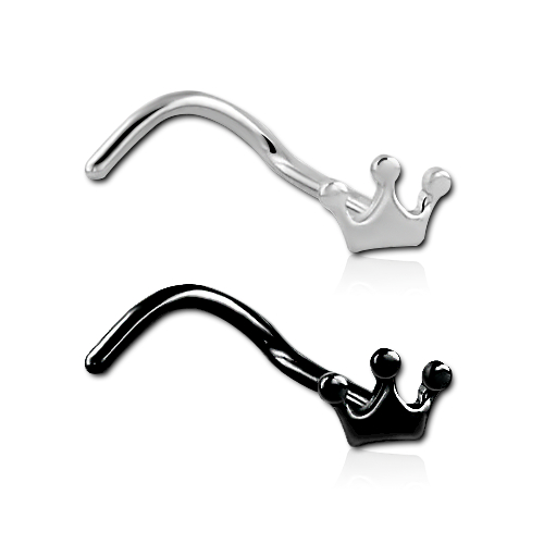 Нострил из хирургической стали 316L с декоративной частью размером 4,6х3 мм в виде короны. Представлен в 2-х вариантах: классический стальной цвет и с чёрным PVD покрытием.
