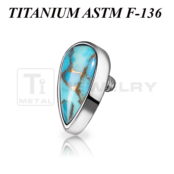 Накрутка из имплантационного титана 6Al-4V-Eli ASTM: F-136 в форме капли. Размер накрутки: 3,6х6,6мм. Украшена искусственной бирюзой с медными прожилками. Подходит для украшений с внутренней резьбой толщиной 1 и 1,2 мм.