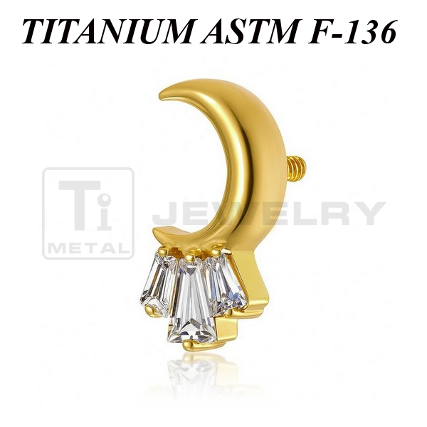 Накрутка из имплантационного титана 6Al-4V-Eli ASTM: F-136. Представлена в двух вариантах: классическая титановая и с золотым PVD покрытием. Подходит для украшений с внутренней резьбой толщиной 1 и 1,2 мм. Размер накрутки: 5х9,5мм.