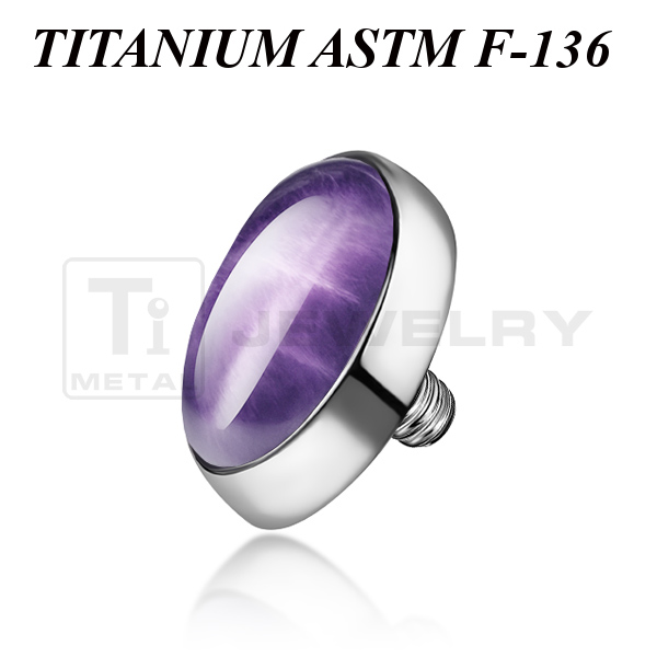 Накрутка из имплантационного титана 6Al-4V-Eli ASTM: F-136 с аметистом. Размер накрутки: 3,3х5,6мм. Подходит для украшений с внутренней резьбой толщиной 1 мм и 1,2мм.