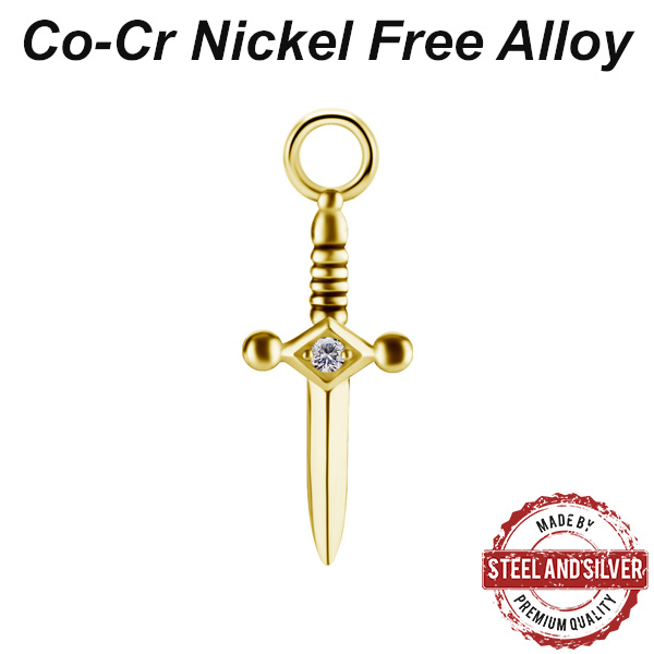 Подвеска из сплава кобальт-хрома, без содержания никеля. Украшена кристаллом Premium Cubic Zirconia. Подходит для колец толщиной не более 2,5мм. Представлен так же вариант с 18-ти каратным золотым PVD покрытие