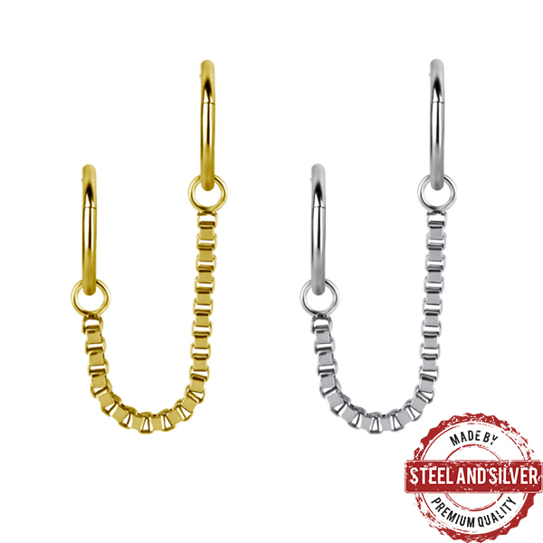 Цепочка из хирургической стали 316L. Представлена в двух вариантах: классическая стальная и с PVD покрытием 24х каратного золота. Подходит для украшений толщиной не более 1,2мм.